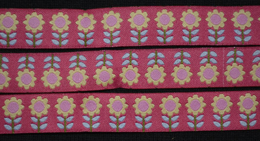 Yellow Flower Ribbon - 5/8 inch Jacquard