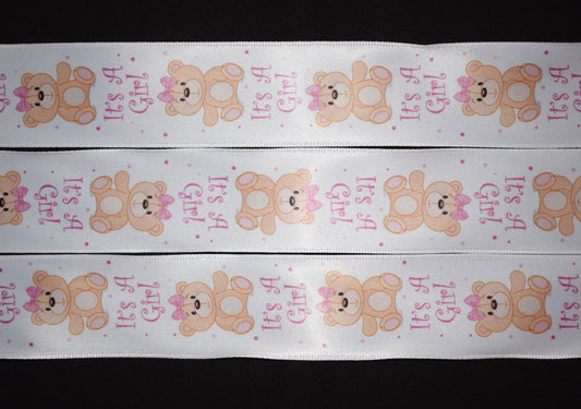 It's A Girl Ribbon - 7/8 inch Printed Satin