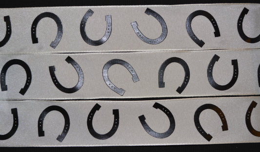 Remnant- Horseshoe Ribbon - 1 1/2 inch Printed Satin Wired Ribbon 1yd+33"