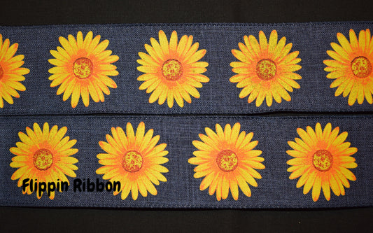 Gerbera Daisy Ribbon - 2 1/2 inch Wired Polyester