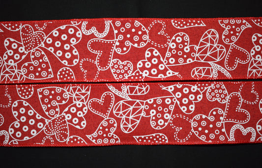 Crazy Hearts Valentine Ribbon - 2 1/2 inch Polyester Wired Ribbon
