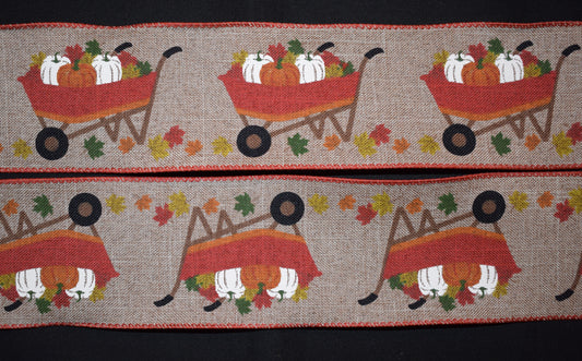 Pumpkin Wheelbarrow Ribbon - 2 1/2 inch Wired Polyester