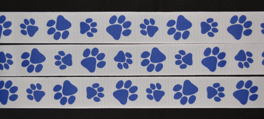 Royal Blue Paw Print Ribbon - 7/8 inch Printed Grosgrain