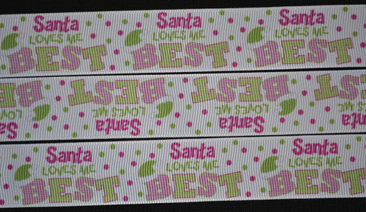 Santa Loves Me Best Christmas Ribbon - 1 inch Printed Grosgrain