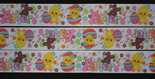 Easter Ribbon with Chicks - 7/8 inch Printed Grosgrain