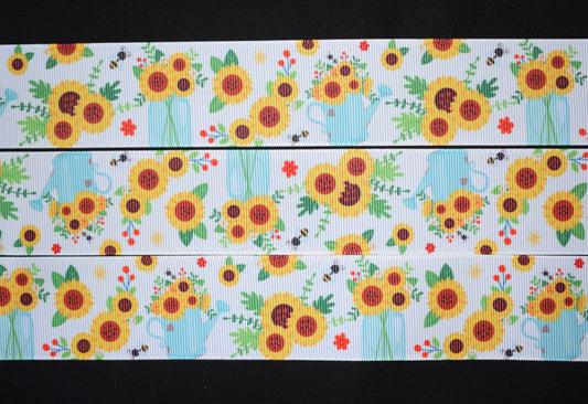 Farmhouse Sunflower Ribbon - 1 1/2 inch Printed Grosgrain