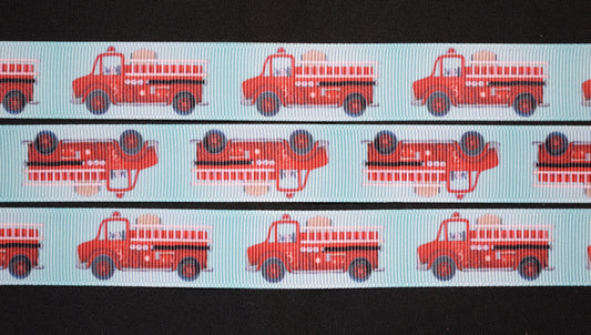 Fire Truck Ribbon - 7/8 inch Printed Grosgrain