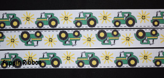 Green Tractor Ribbon - 7/8 inch Printed Grosgrain