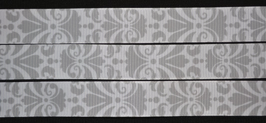 Grey Damask Ribbon - 7/8 inch Printed Grosgrain