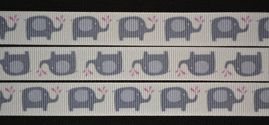 Grey Elephant Ribbon - 5/8 inch Printed Grosgrain