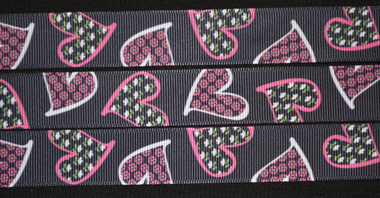 Hearts with Flowers Ribbon - 7/8 inch Printed Grosgrain