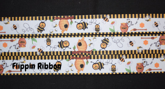 Honey Bee Ribbon - 1 inch Printed Grosgrain