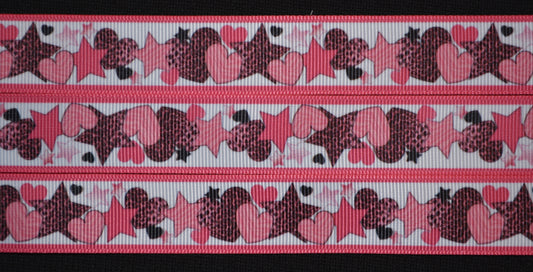 Hearts and Stars Ribbon - 7/8 inch Printed Grosgrain