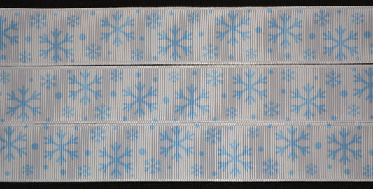 Light Blue Snowflake Ribbon - 1 inch Printed Grosgrain