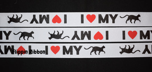 I Love My Cat Ribbon - 7/8 inch Printed Grosgrain