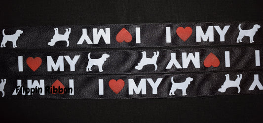 I Love My Dog Ribbon - 7/8 inch Printed Grosgrain