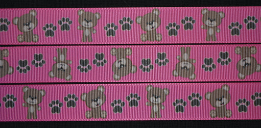 Hot Pink Teddy Bear Ribbon - 7/8 inch Printed Grosgrain